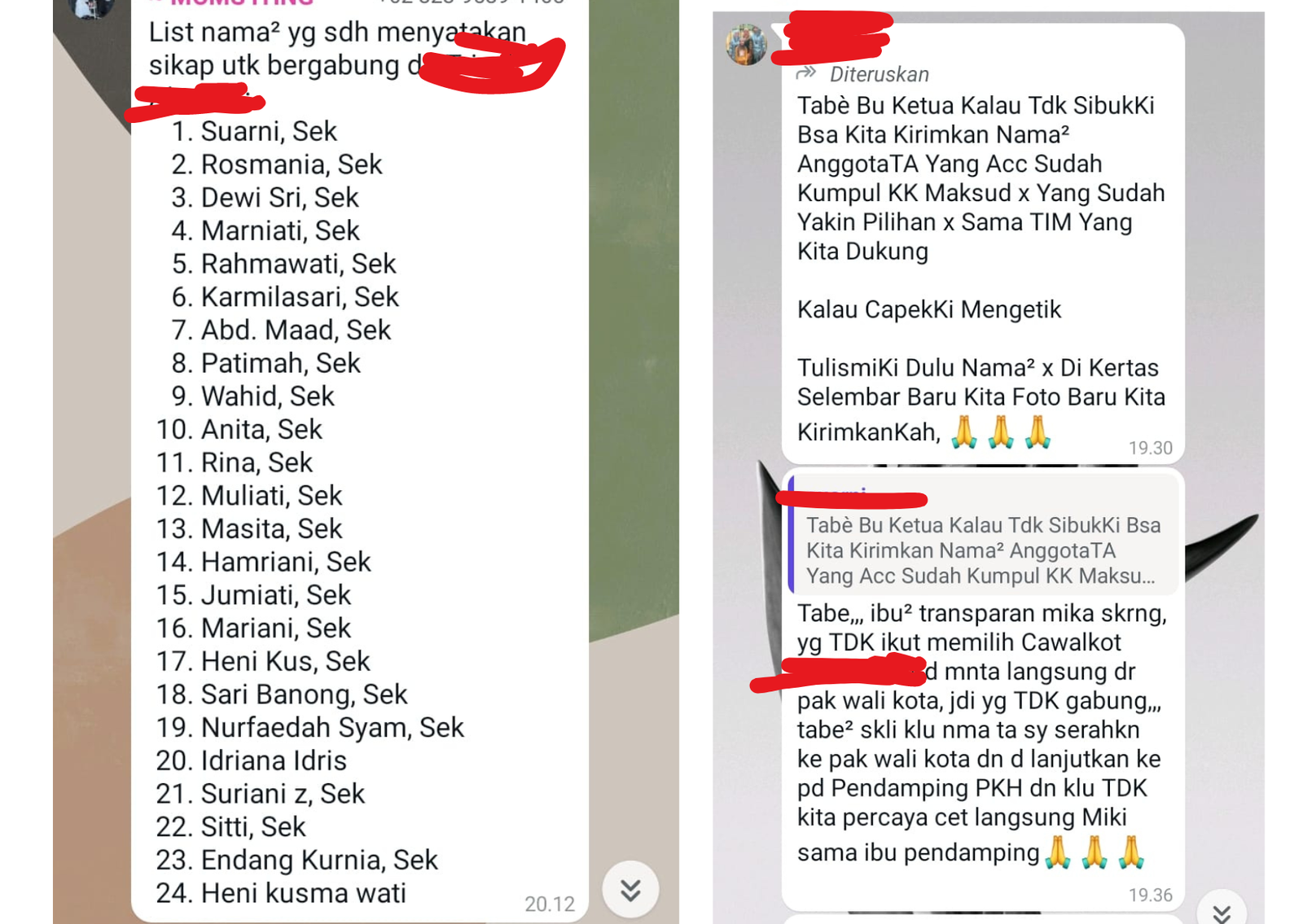Beredar chat di grup WhatsAppa, para penerima PKH di Palopo diarahkan untuk mendukung salah satu paslon walikota.