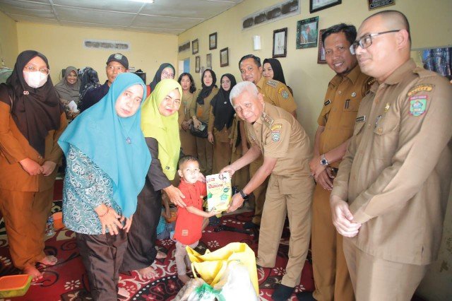 ASAHAN, TEKAPE.co – Bupati Asahan H. Surya, BSc bersama Ketua TP PKK Kabupaten Asahan Ny. Titiek Sugiharti Surya menyerahkan bantuan makanan tambahan kepada Taufik Ramadhan Lk. V, Zulmi Ikram Farzana Hasibuan Lk. V, M. Ikbal Lk V dan Arby Sy’aban S Lk. I. Keempat anak ini merupakan masyarakat Kelurahan Karang Anyer Kecamatan Kota Kisaran Timur yang menderita stunting, Senin (09/10/2023).