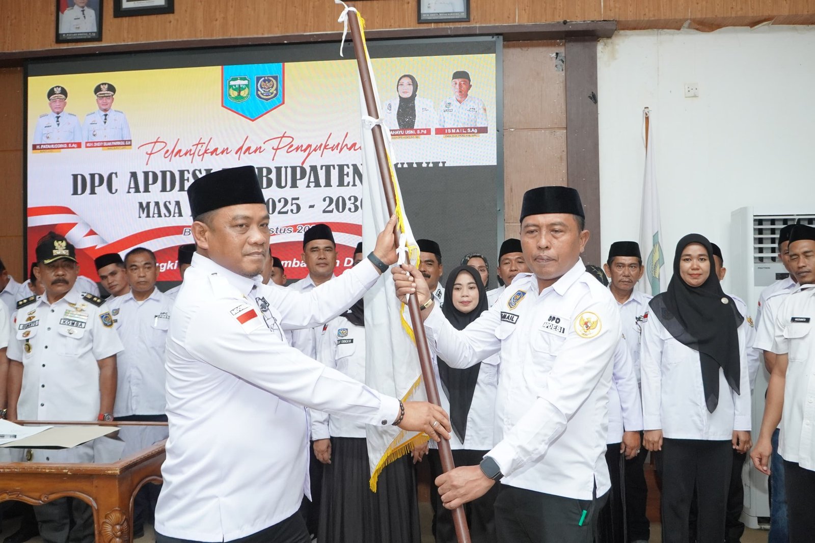 Pelantikan Pengurus APDESI Kabupaten Luwu dipimpin langsung oleh Ketua DPW APDESI Provinsi Sulawesi Selatan, Sri Rahayu Usni. Prosesi pelantikan diawali dengan pembacaan ikrar, pengucapan kata-kata pelantikan, penandatanganan berita acara, hingga penyerahan Pataka APDESI kepada Ketua terpilih Kabupaten Luwu, Ismail.