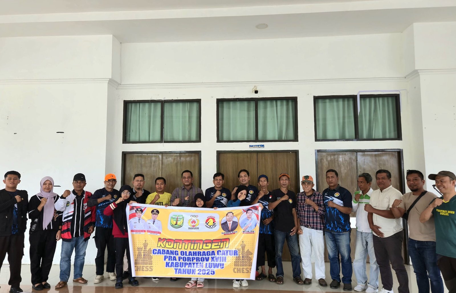Acara pelepasan berlangsung di Rumah Jabatan Bupati Luwu, Sabtu, 27 September 2025. Turut hadir Ketua KONI Luwu, Suryanto, Ketua PERCASI Luwu, Mistam, para pelatih, official, serta 13 atlet catur yang akan bertanding.