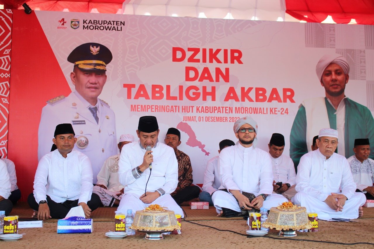 Zikir dan tabligh akbar dalam rangka memperingati HUT ke-24 Morowali, diikuti Pejabat (Pj) Bupati Morowali Rachmansyah Ismail, Kapolres Morowali AKBP Suprianto.