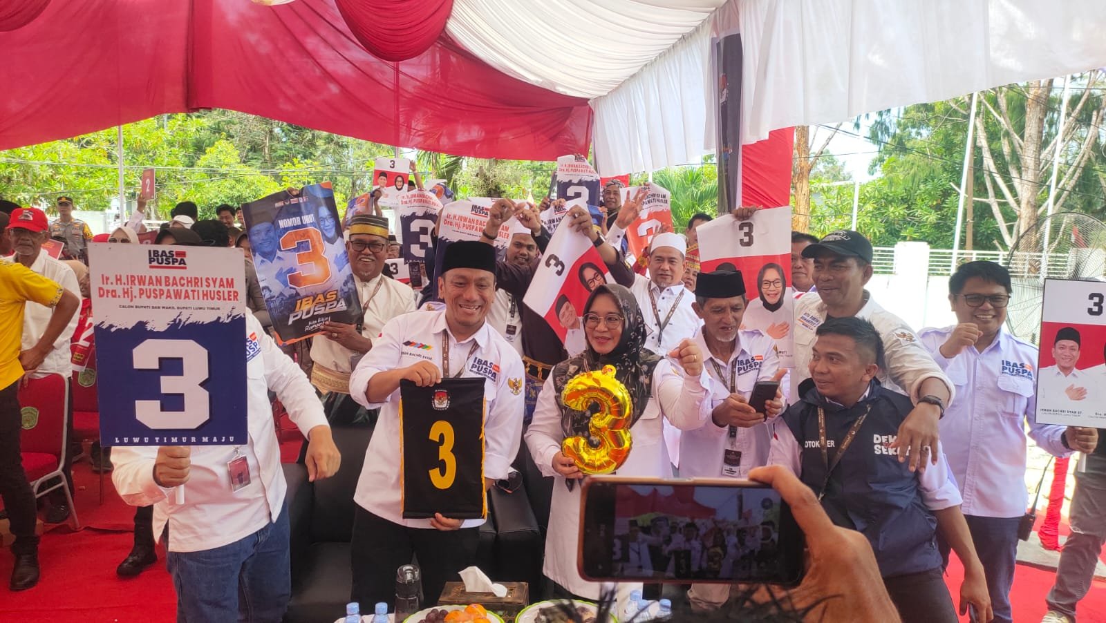 MALILI, TEKAPE.co – Pasangan Calon Bupati dan Wakil Bupati Luwu Timur, Irwan Bachri Syam – Puspawati Husler (Ibas-Puspa) mendapat nomor urut 3 pada pencabutan nomor urut yang digelar di KPU Kabupaten Luwu Timur, Senin pagi, 23 September 2024.