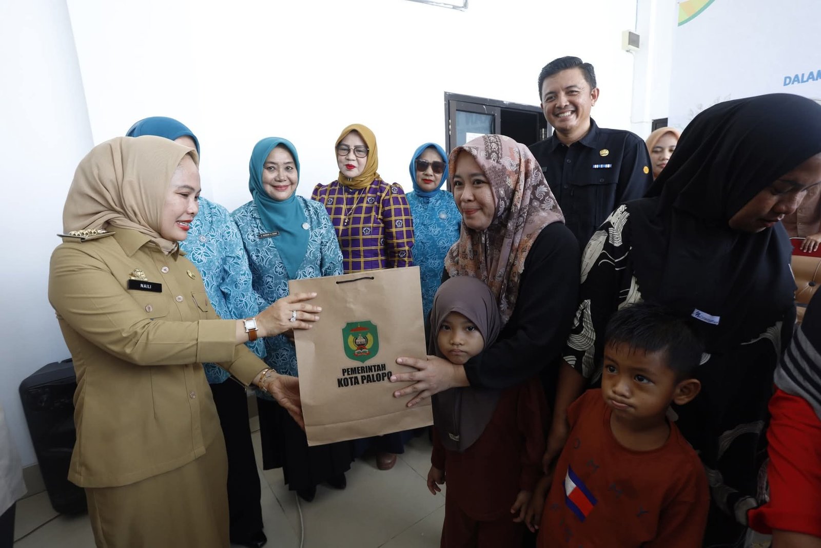 Wali Kota Palopo, Naili, didampingi Kepala Dinas Kesehatan, Irsan Anugrah, menyerahkan secara simbolis goody bag berisi telur, suplemen, dan biskuit kepada peserta dalam kegiatan Gerakan Gemar Makan Telur di Aula Dinas Kesehatan Palopo, Selasa (14/10/2025). (ist)