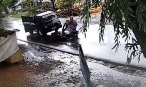 Keduanya dari bagian belakang sebelah kiri dan menarik tas yang tergantung di stir. Pelaku kemudian langsung kabur.