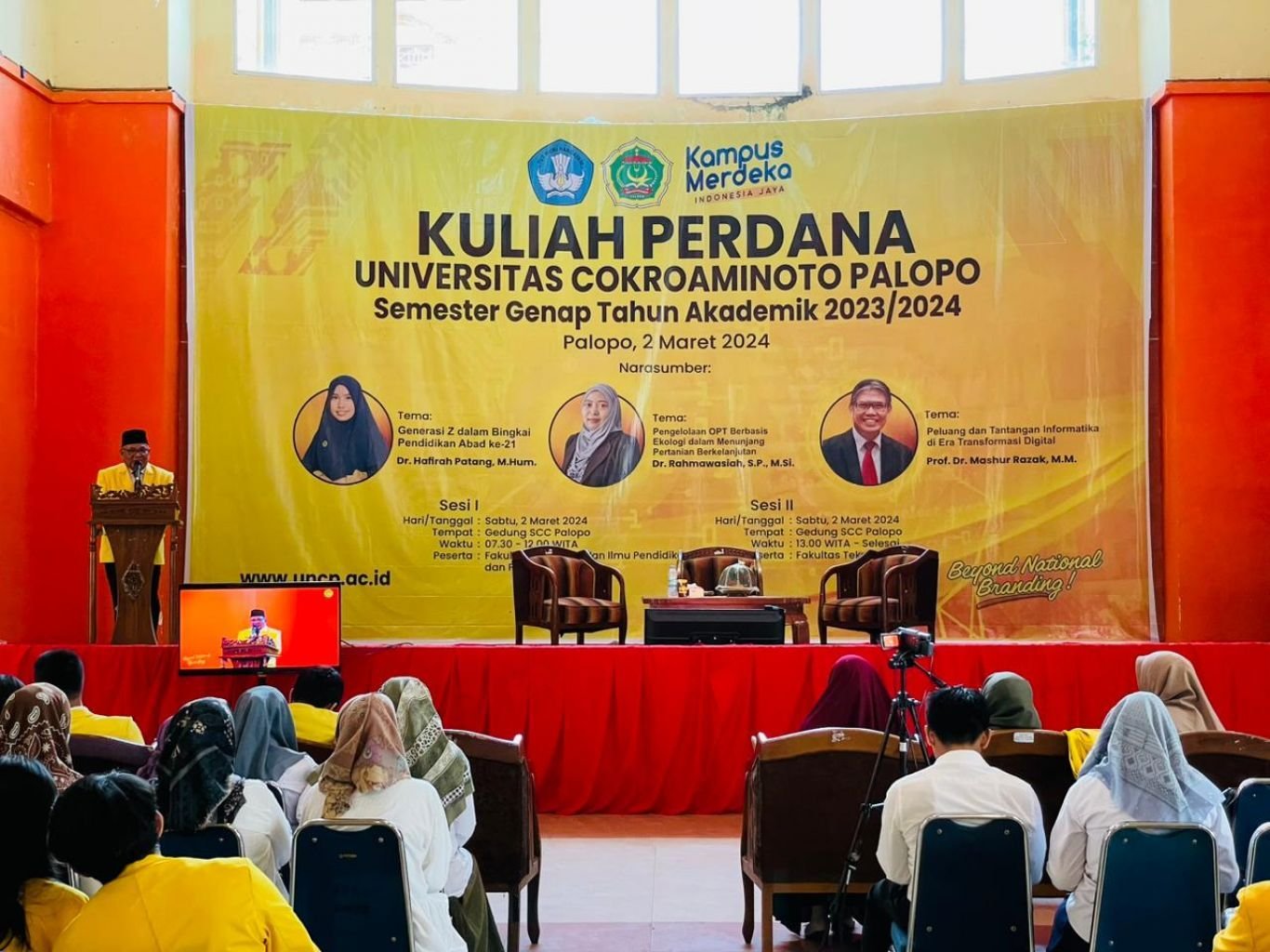 Kuliah perdana berlangsung di gedung Saodenrae Convention Center (SCC), Sabtu 2 Maret 2024. Kegiatan dihadiri oleh Rektor, Dekan lingkup UNCP, serta dosen FKIP dan Fakultas Pertanian.
