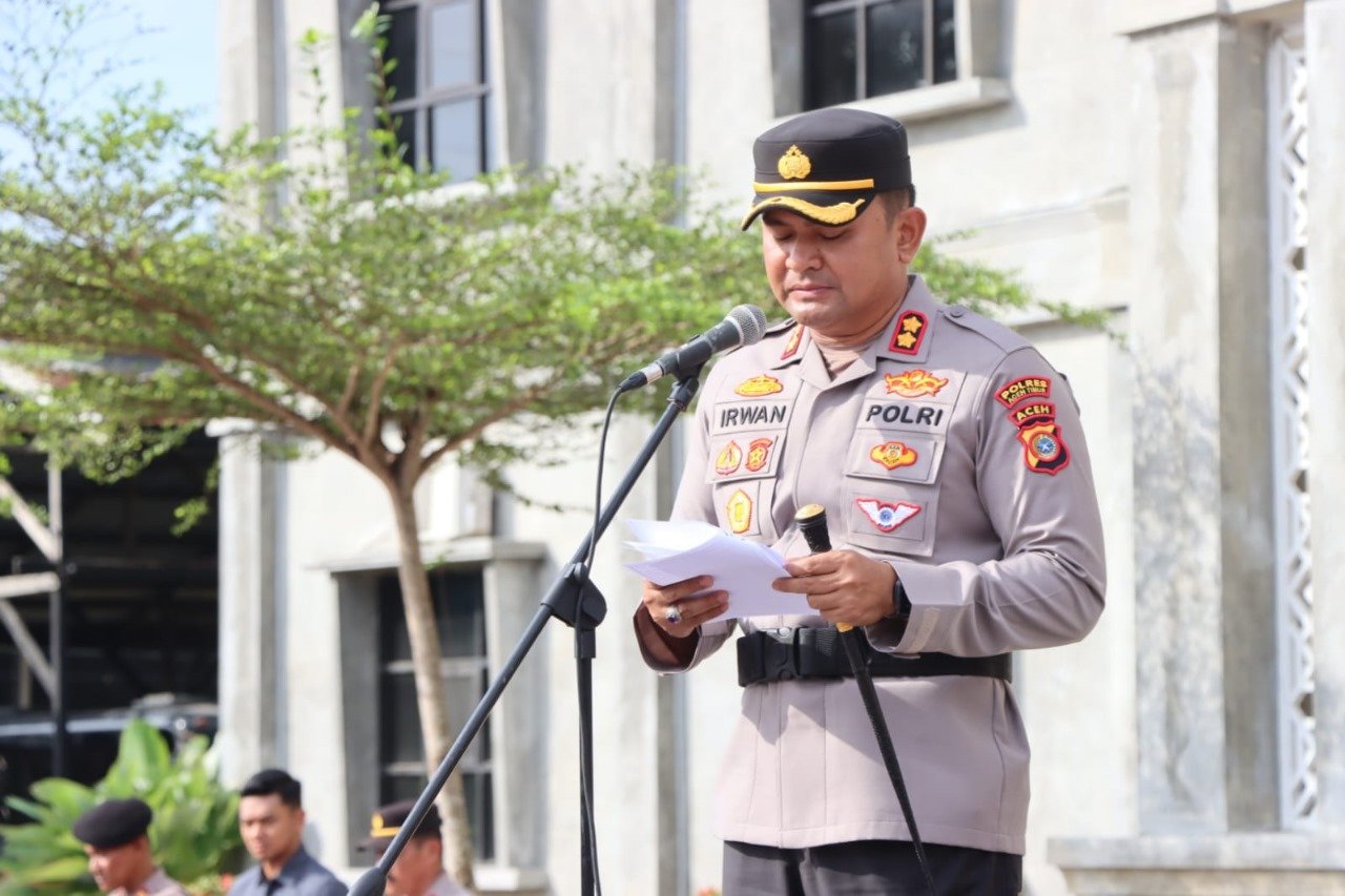 Kapolres Aceh Timur, AKBP Irwan Kurniadi, menyampaikan langsung pembentukan Satgas dalam Apel Gelar Pasukan di Mapolres, Kamis pagi.