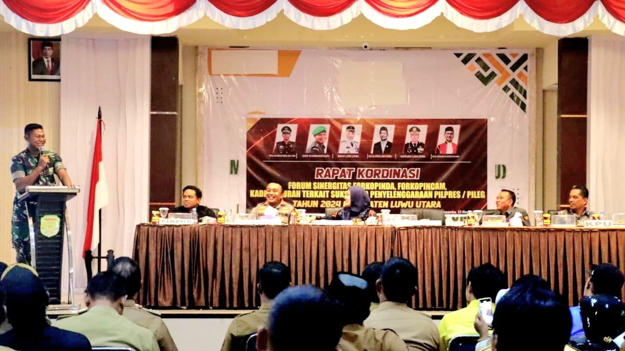MASAMBA, TEKAPE.co – Dandim 1403 Palopo menghadiri Rapat Koordinasi (Rakor) Finalisasi Persiapan Pelaksanaan Kampanye Pemilu 2024 di Komisi Pemilihan Umum (KPU) Kabupaten Luwu Utara, Kamis 23 November 2023.