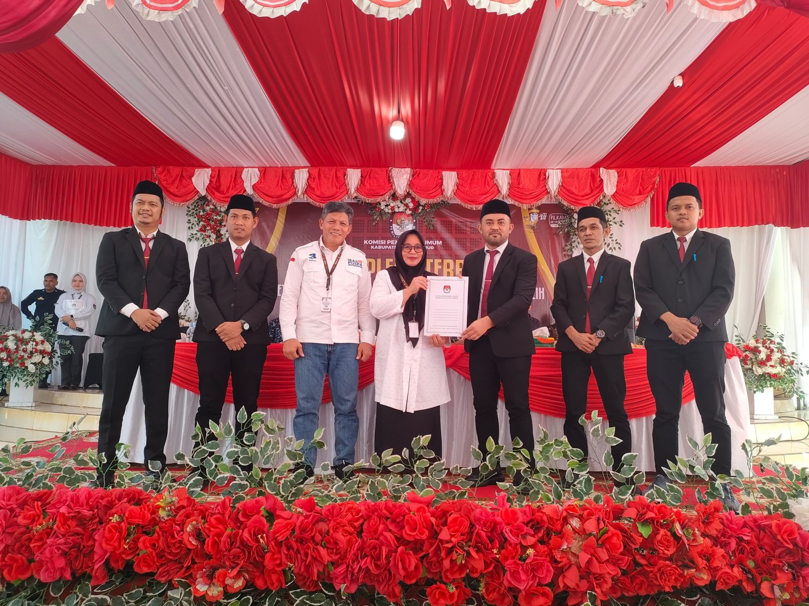 Selain itu, hadir pula Ketua Bawaslu Luwu Timur Pawennari, anggota Bawaslu Sulkifli, Sekretaris KPU Ramlan, ketua tim pemenangan IBAS-Puspa Herdinang, perwakilan partai pengusung, dan simpatisan.