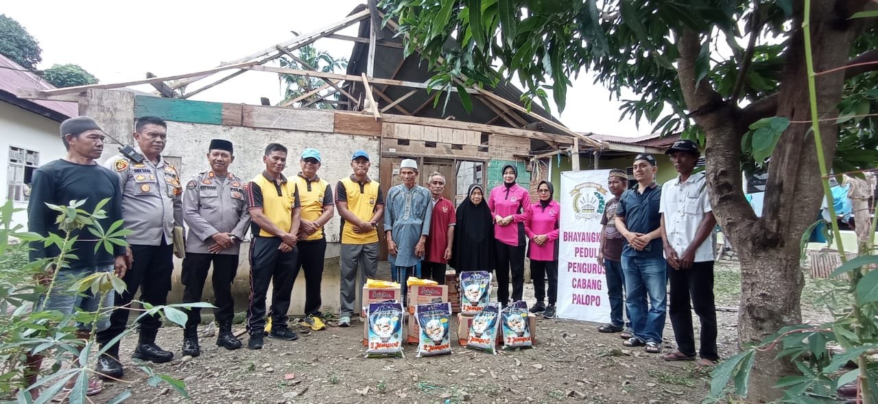 Dalam kungjungannya, Kapolres dan Ketua Bhayangkari Cabang Palopo memberikan bantuan sembako kepada warga terdampak angin puting beliung tersebut.