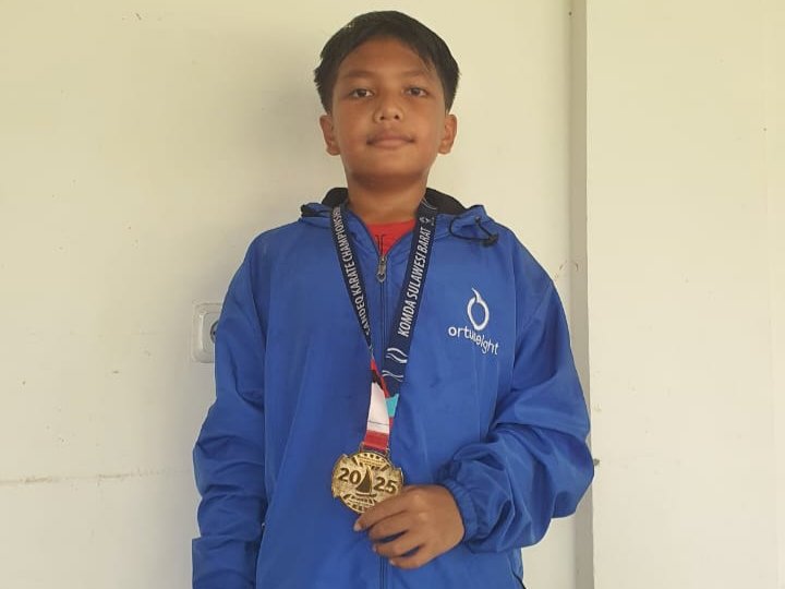 POLMAN, TEKAPE.co – Karateka belia asal Kabupaten Luwu, Sulawesi Selatan, Muh Abid Arbi Arsyad, menambah koleksi prestasinya di arena tatami. Dalam ajang Sandeq Open Karate Championship 2025 yang berlangsung di Polewali Mandar, Sulawesi Barat, Abid Arbi Arsyad keluar sebagai juara pertama di kelas kumite perorangan putra +35 kg pra pemula.