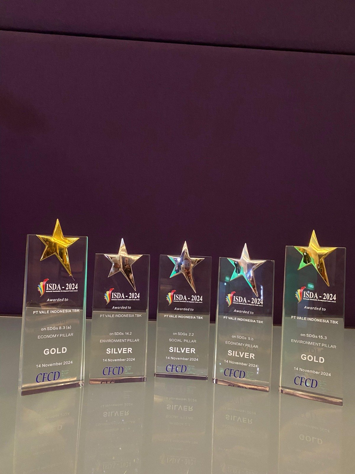Apresiasi yang diperoleh PT Vale dengan diraihnya lima penghargaan Indonesian SDGs Award (ISDA), yakni: