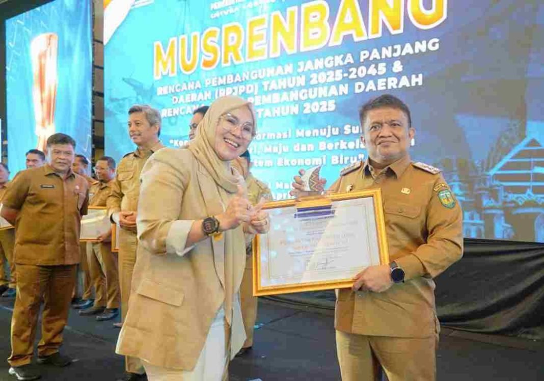 Piagam penghargaan diserahkan pada kegiatan Musyawarah Rencana Pembangunan (Musrenbang) Rencana Pembangunan Jangka Panjang Daerah (RKPD) Tahun 2025-2045 & Rencana Kerja Pembangunan Daerah (RKPD) Tahun 2025 yang berlangsung di Claro Hotel Makassar, Selasa, 30 April 2024.