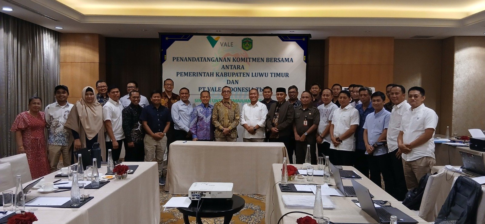 Bupati Luwu Timur, Irwan Bachri Syam, dan Plt Presiden Direktur PT Vale Indonesia, Bernardus Irmanto, membubuhkan tanda tangan pada dokumen strategis yang memuat sembilan poin kesepakatan utama.
