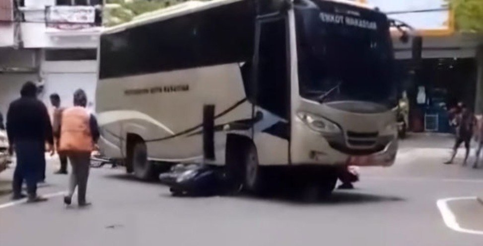 Pengendara Motor Terseret di Bawah Bus Pemkot Makassar
