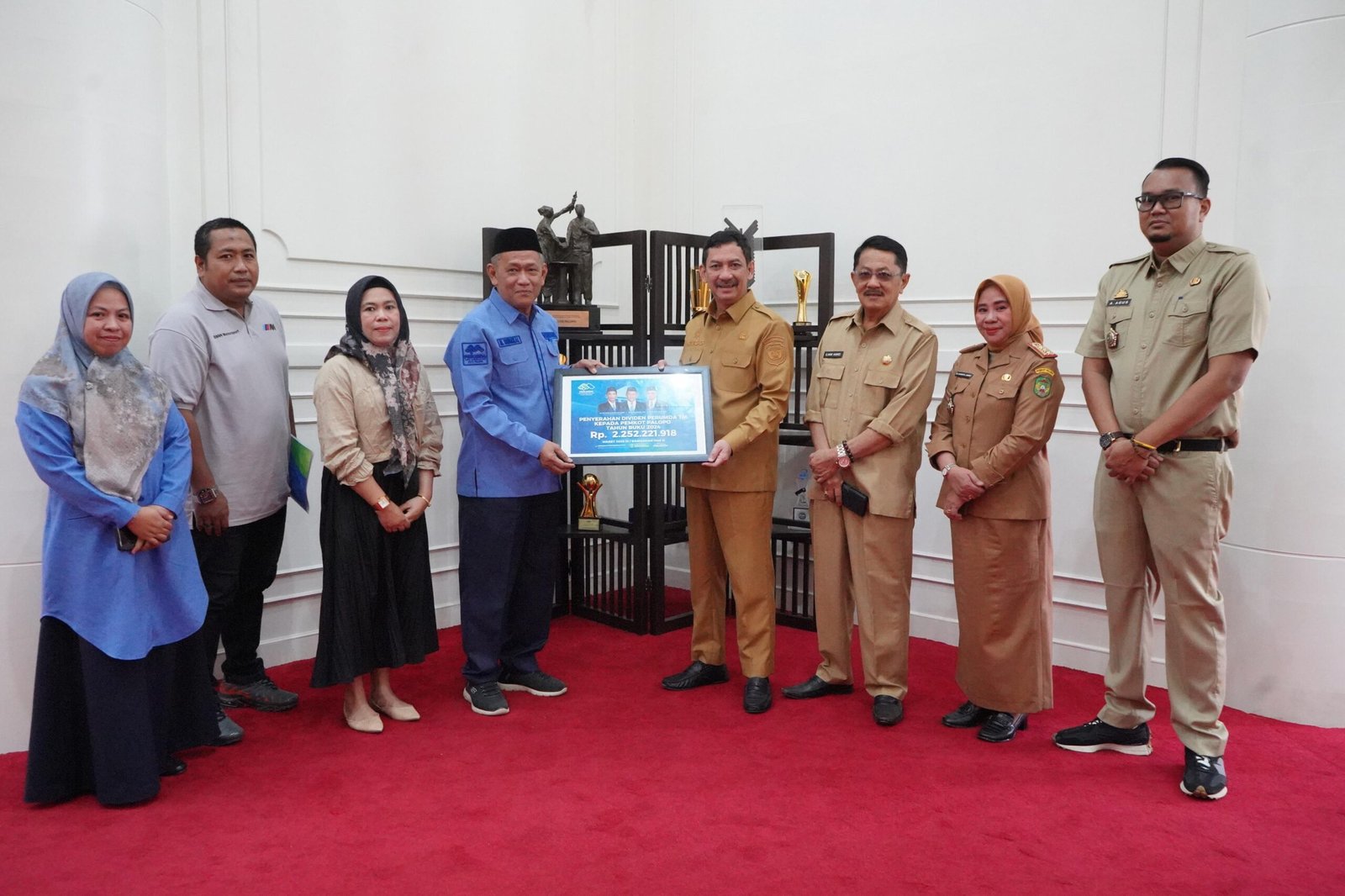 Seremoni penyerahan berlangsung di ruang kerja Wali Kota Palopo pada Senin, 24 Maret 2025. Pj Wali Kota Palopo, H Firmanza DP, menerima langsung dividen tersebut dari Direktur Utama Perumda TM, M Tawakkal. Hadir pula Pj Sekda Ilham Hamid, Kepala DPPKAD Hj Raodatul Jannah, serta jajaran Dewan Pengawas Perumda TM yang terdiri dari Ketua Dewas Hisma Kahman, Sekretaris Imam Pribadi, dan Anggota Dewas Andi Agus Mandasini. Juga Manajer Keuangan Perumda TM, Andi Megawati, juga turut mendampingi.