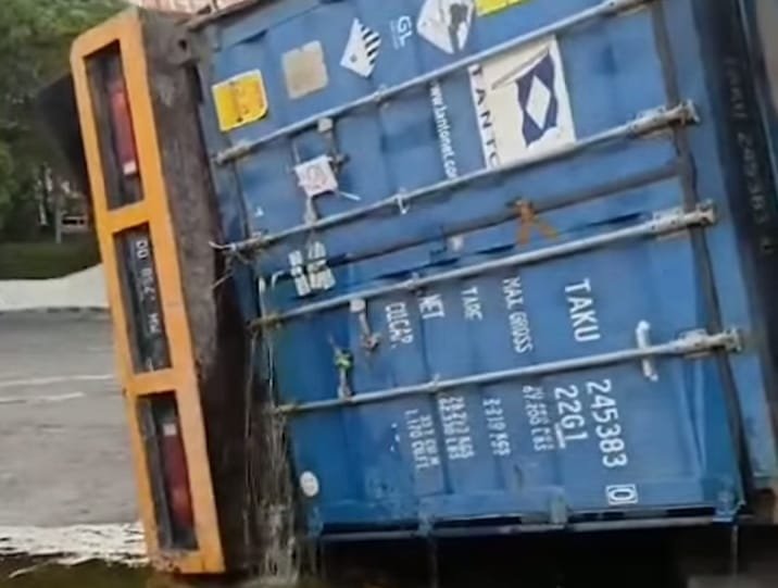 MAKASSAR, TEKAPE.co – Sebuah truk container bermuatan minyak goreng mengalami kecelakaan di Jalan AP Pettarani, Makassar, Kamis 24 Oktober 2024.