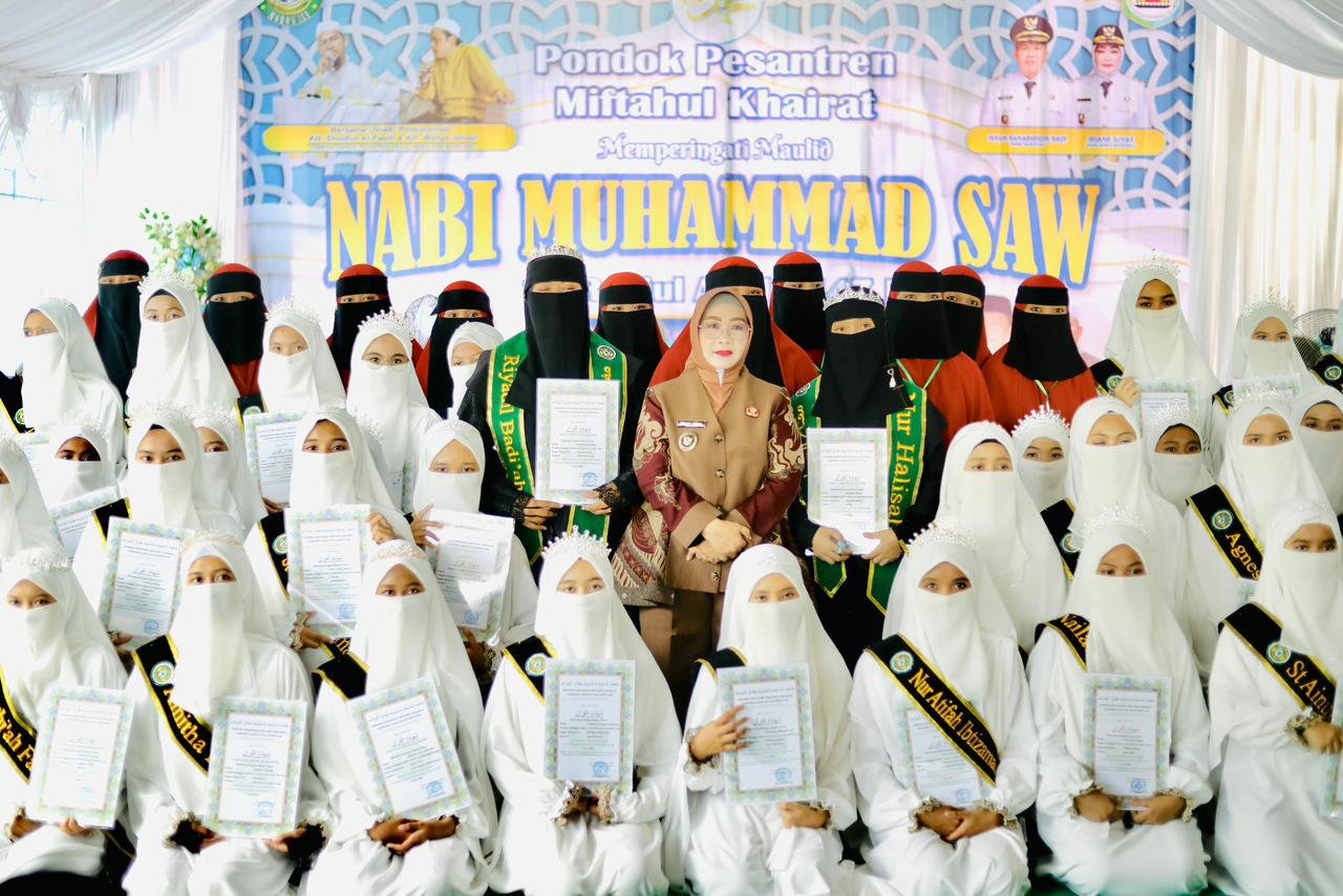 MOROWALI, TEKAPE.co – Wakil Bupati Morowali, Iriane Iliyas, menghadiri peringatan Maulid Nabi Muhammad SAW yang dirangkaikan dengan wisuda tahfidz Al-Qur’an di Pondok Pesantren Miftahul Khairat, Kecamatan Bungku Tengah, Kamis (25/9/2025).