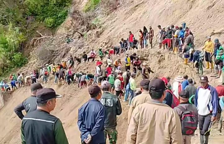 “Sudah hampir tiga bulan, tidak satu pun alat berat datang. Kami tidak punya pilihan selain memperbaiki sendiri,” kata Jackson Milano, salah seorang warga.